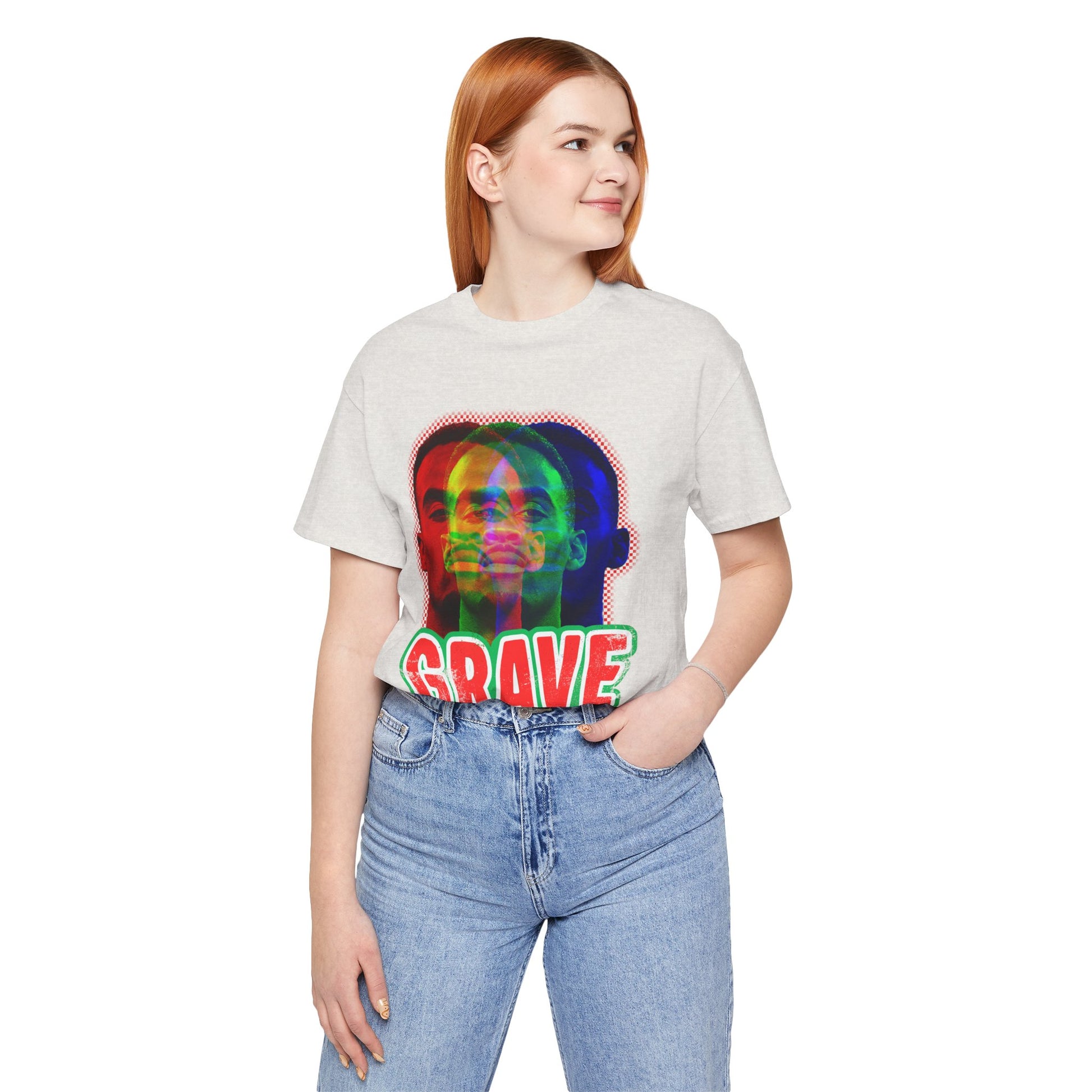 Affirme ton style avec ce t-shirt en jersey doux et respirant, imprimé d’un texte français audacieux et d’un portrait stylisé pour un look épuré, moderne et affirmé. Idéal au quotidien, il apporte une vraie touche de caractère à ta tenue sans en faire trop.